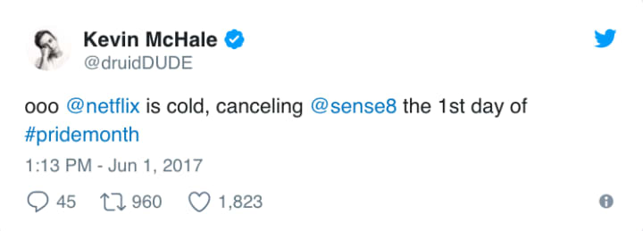 Time will tell if the vocal response garners any network attention or acknowledgement. But it's only day one — of Sense8's bad news and of Pride Month. If history is any judge, the LGBT community isn't going anywhere.