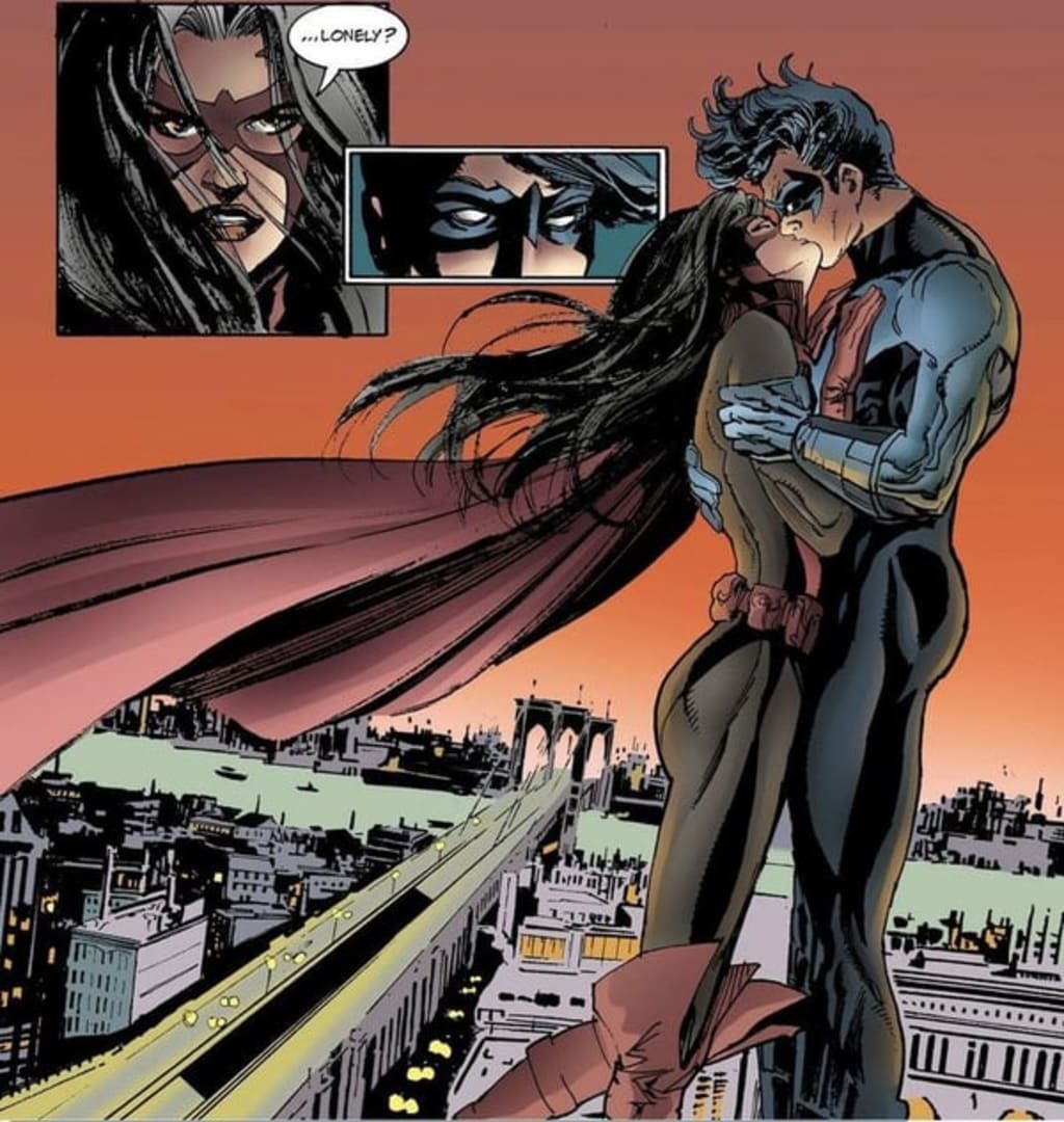 Now this may not seem a strange relationship, but once you have the whole story it gets a bit more unorthodox. Dick Grayson is the unofficial first son of Batman, as he was basically raised in Wayne Manor and mentored for years by the Dark Knight and his alter ego Bruce Wayne. Helena being the alternate-universe daughter of Batman & Catwoman, was also raised in Wayne Manor and makes the two either foster-siblings or possibly step-brother/sister.