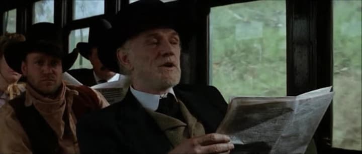 Alongside Woolvett's character, “English” Bob exposes the life of those who try to live off of a legend of their own making. Making a well off name for himself (thanks to his dubious biography The Duke of Death), only to be humiliated and beaten by Sheriff Daggett; showing how he is, in actuality, a man of fear and cowardice who uses his mouth as a means of reinforcing his superficiality. Along with such an achilles heel is his public expression of social and political views. Such as how the United States should be lead by a king or queen, in order to eliminate the event of “Presidential Assassinations”. Which does nothing but offend everyone that he talks to.