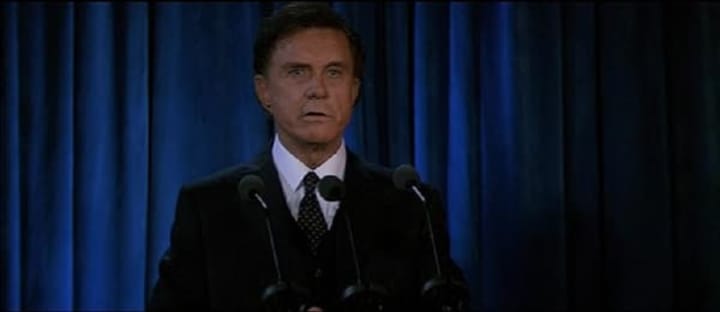 Unbelievably the only POTUS with a military background since George Washington. Bill Pullman's Thomas Whitmore wasn't a bad person, far from it, he was just a hopeless president. A cocky Bill Clinton of suave, Whitmore lead the country to the first battle against the aliens and miraculously survived. He was a cliché waiting to happen from a rehashed Top Gun stereotype, so when it was announced that Pullman would return for Resurgence, it was no surprise that he would depart the film in a bodybag. Whitmore's demise was typical OTT fashion as he spouted some line about the Fourth of July as he blew up, taking the alien ship with him. Would you like some cheese with your movie Mr. Emmerich?