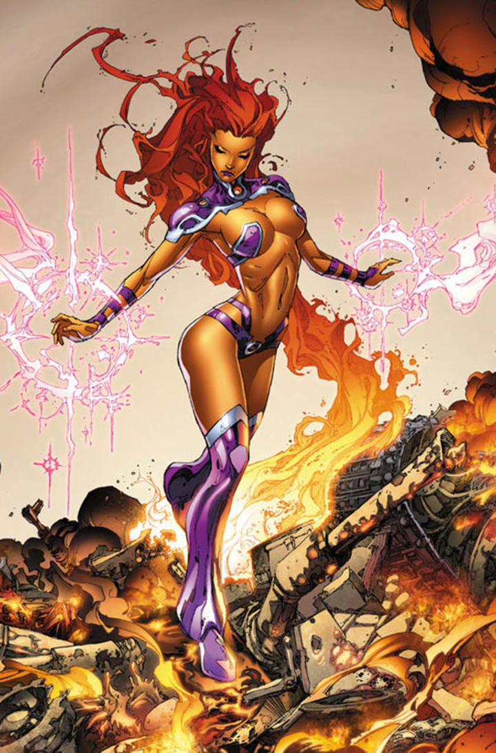 Starfire is an alien princess from the planet Tamaran. She is the middle child of three sisters and is in line to take the throne after her older sister is deemed unworthy to rule (as she is unable to take flight by harnessing ultraviolet light). Starfire's elder sister is bitter and seeks alliance with her family's enemy, the Citadel. After an invasion, Starfire and her now betrayed sister are subjected to six years of torture and experimentation to discover how much energy a Tamaranian body could absorb before exploding. Through the experimentation, Starfire gains the ability to channel the energy into destructive blasts called 'starbolts' as well as unleashing all her stored up ultraviolet energy into a nova-blast of sorts.