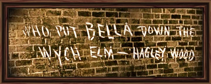 Months after the body’s discovery, strange graffiti began to appear across the West Midlands, first on a wall in Upper Dean Street, Birmingham. The now-infamous phrase, “Who put Bella down the Wych Elm, Hagley Wood,” soon began showing up on more public walls, train stations, and abandoned buildings. The wording varied slightly, sometimes reading “Who put Luebella in the wych elm?” or “Hagley Wood Bella.” The graffiti, written in white chalk, appeared periodically over years, and continued even into the 1970s.