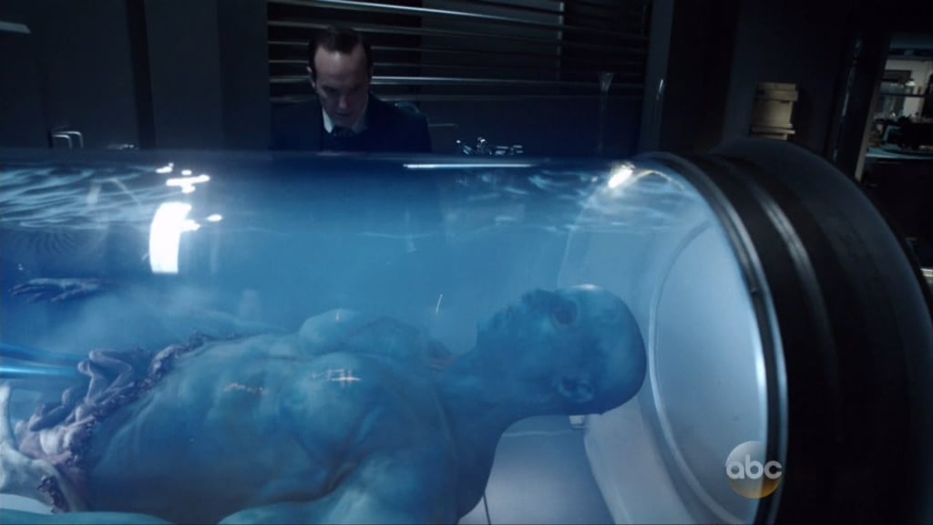 Looking past Bennet and Natalia Cordova Buckley (Yo-Yo), fans spotted an intriguing blue-skinned figure in the background. It's unlikely to be Yondu of Guardians of the Galaxy fame, and there's only one blue-skinned race that Agents of S.H.I.E.L.D. has ever been interested in.