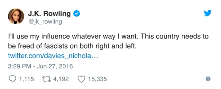 J. K. Rowling has gone political.