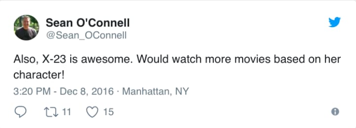 The words are accompanied by a glimpse of Logan's hand held in that of X-23's, a none-too-subtle hint that Dafne Keen's X-23 is someone very much like Logan. As fans of the comics know, X-23 is actually a clone of Wolverine, created to be a living weapon. She is, as Patrick Stewart's Charles Xavier said in an earlier trailer, "very much like" Logan himself.