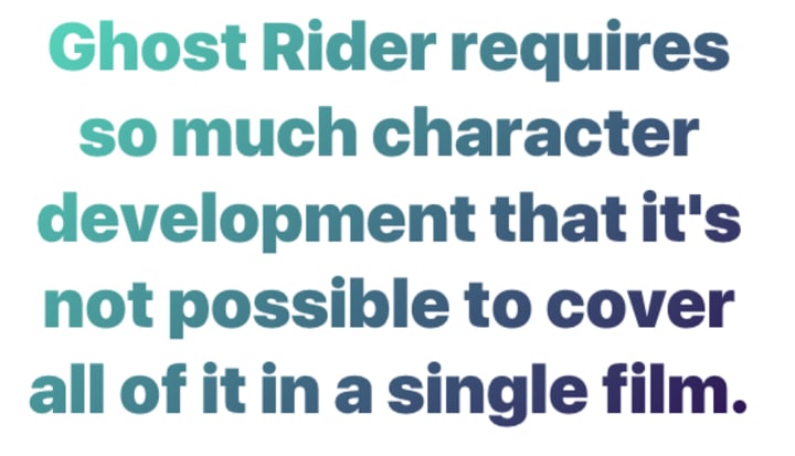Not only does Ghost Rider's vast comic mythology need to be explored in depth, there needs to be development for the villain as well, in order to make sense of why the villain is reigning down destruction on Earth and everything Ghost Rider fights for.