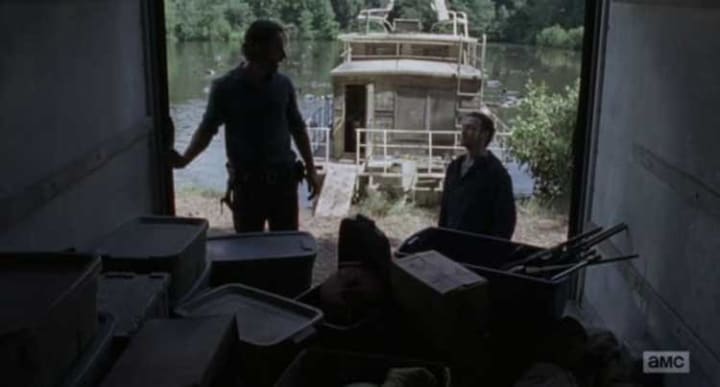 Quite a few other plot-threads were explored during the episode, one in particular was Aaron and Rick attempting to gain access to the weapons cache on that floating barge.