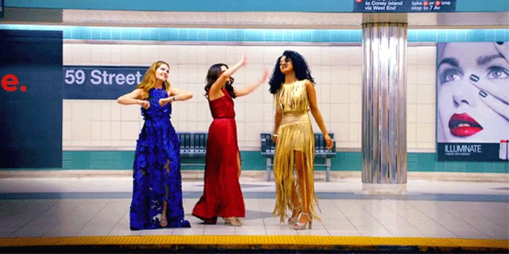 The pilot opens with three women standing together on a platform for a train station. As the train approaches, they step up holding hands and SCREAM. Count me intrigued. Jane, Kat, and Sutton are all employees at Scarlet magazine, and Jane has just been promoted to writer. Kat is in charge of social media and Sutton is an assistant. The first episode follows them as they tackle the challenges of their jobs, but get this: they aren't pitted against each other at all.