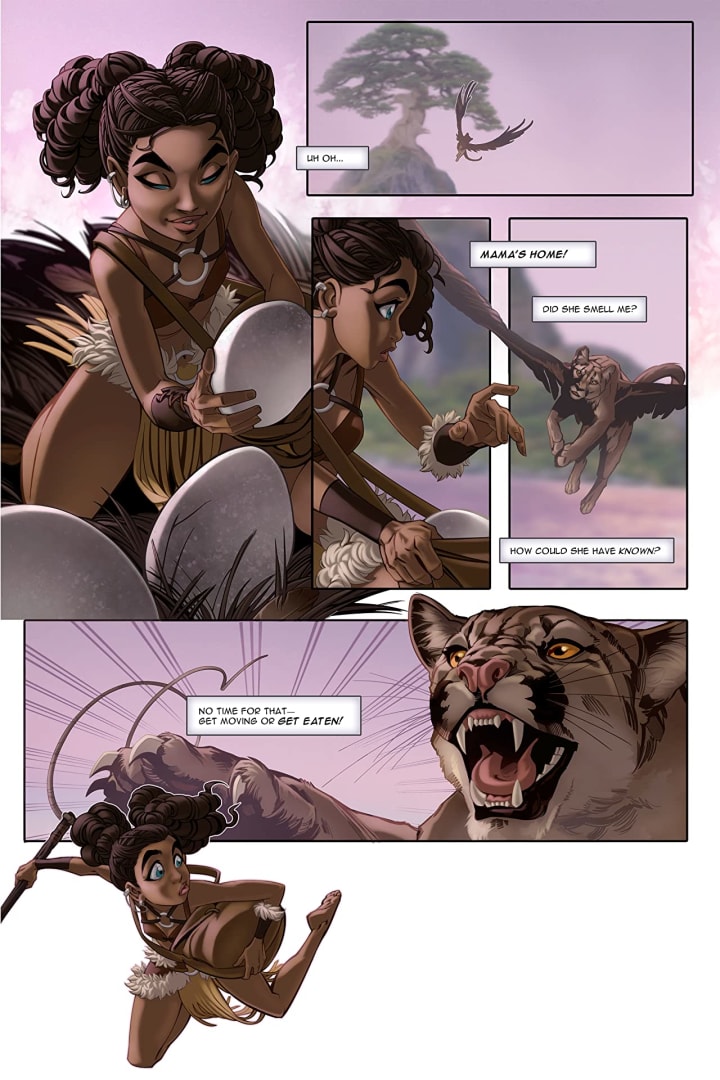I saw this on Comixology and reached out to Melissa about reviewing her series. What I saw was gorgeously illustrated pages with creatures that intrigued me and that alone made me want to know and see more. I’m glad I did too because this really is a beautiful book. The opening had me instantly and all I had to do was see the majesty in the winged cat to know there was no turning back. The opening does what it’s supposed to do, it captures the readers mind, imagination and engages them in some really smart ways. I hadn’t read the descriptor until I was writing this so when I saw Kufra with the egg I hadn’t a clue why she wanted it but to see her in action and acquiring it well that was special.