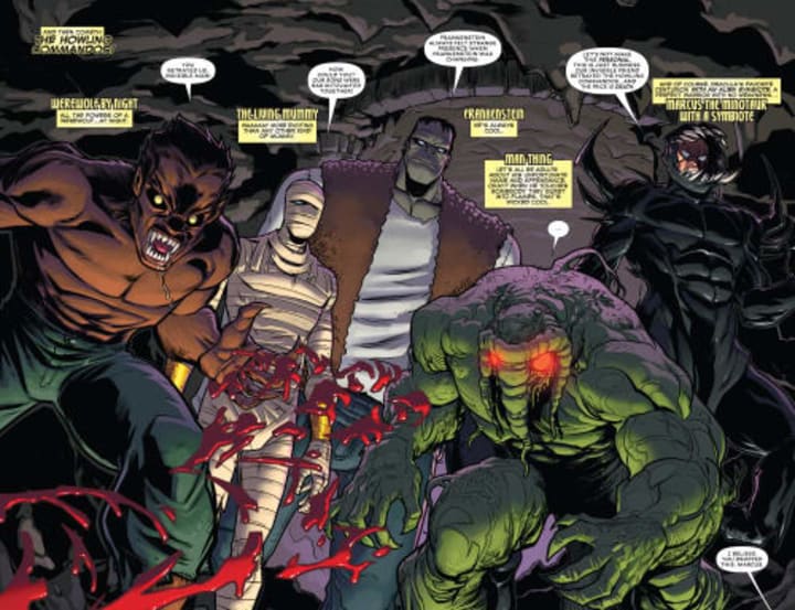In Marvel Comics, Nick Fury's Howling Commandos is a team comprised of Marvel's horror monsters, who are sent in to fight other supernatural threats. Warwolf, the Living Mummy, Frankenstein's clone, the Zombie John Doe, Vampire by Night are all members of Nick Fury's Howling Commandos.