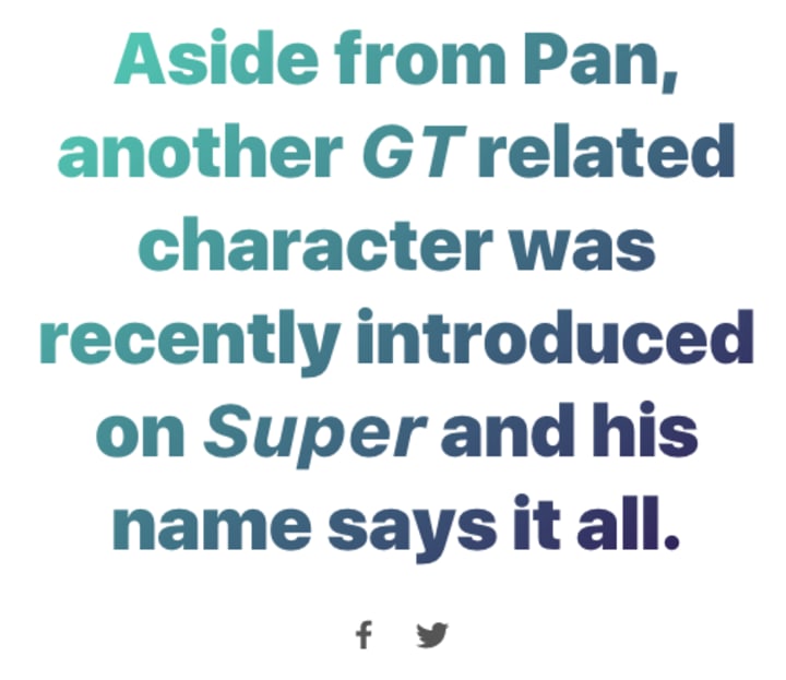 The first clues towards Dragon Ball GT having some influence on Dragon Ball Super came when Pan was introduced. Videl gave birth to Pan during Super, when Pan was originally introduced at the age of 4 during Dragon Ball Z. Pan didn't get much screen time in #DBZ, with the series closing out soon after she was introduced. It was actually on Dragon Ball GT that Pan became a spotlighted character at the age of 9.