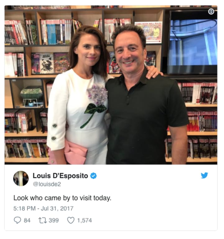 Back in July, Marvel fans sat up and took note when Atwell visited Marvel's Louis D'Esposito.