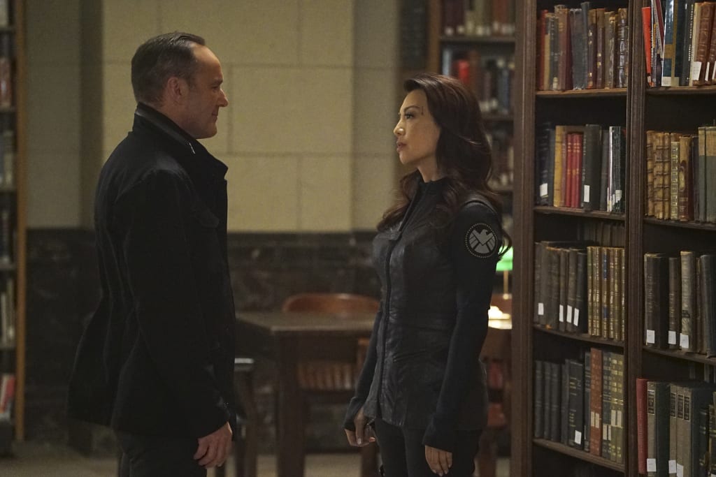 The "LMD" arc is coming to a head in Season 4 of Agents of S.H.I.E.L.D., and the latest episode, "The Man Behind The Shield", left us in a dark, disturbing place. The episode closed with Fitz and Simmons realizing that the mission to rescue Jeffrey Mace had just gone badly wrong; they'd brought not one but four LMDs into the S.H.I.E.L.D. base! The final twist showed the Coulson LMD choosing to awaken May's LMD, which had been kept in cold-storage since Fitz and Simmons exposed her.