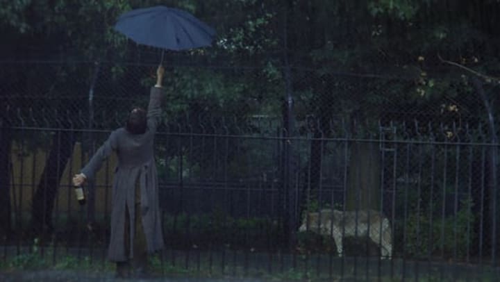 The Movie culminates in one of the most poignant and emotionally charged scenes in cinema history. Richard.E.Grant's character left on his own, recites Hamlet to a lone wolf in the park and we get a vision of what he was before the excess of pills and booze turned him into the self loathing caricature he has become.