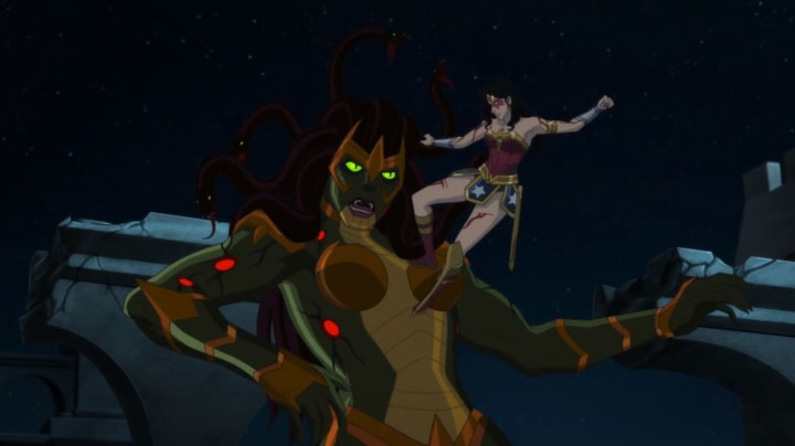 Now comes what to me is the highlight of the film: the action and animation. Sometimes with superheroes, I feel a little underwhelmed when it becomes a contest of who can punch the other through the most buildings. Now while the first fight did sort of give me this impression, I figured the fights would only get better as the movie went on, and for the most part I was right. When Wonder Woman fights Silver Swan, she doesn't wanna actually harm her which makes for an interesting battle. The fight with Cheetah was entertaining because while Wonder Woman outmatched Cheetah in strength and skill, Cheetah takes a drug that increases her speed to a level Wonder Woman can not handle. Wonder Woman then has to find a way to catch her, and I won't say how but it was for sure entertaining to see.