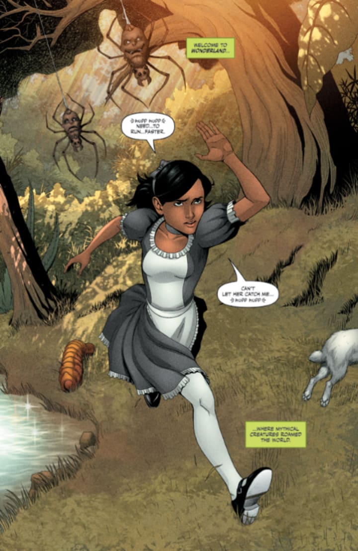Hundreds of years before the Liddles ever stepped foot there, and long before it was destined for its inescapable chaos and insanity, there was Wonderland, the realm of dreams. It was a peaceful land of hope and imagination, but under its surface grew a darkness waiting to spread its tendrils into all that was. And as it was finally released, the evil seeped out into this extraordinary world, pulling two sisters into the center of its plot to bring madness to the inhabitants of all it touched, turning all it corrupted into nightmares of their former selves.