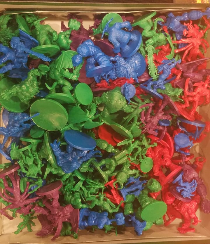 Over two years later, it’s still in its coffin box. It will rest in peace unless I go nuts and decide to paint the 170 monster miniatures, reorganize it, or photograph it for an article.