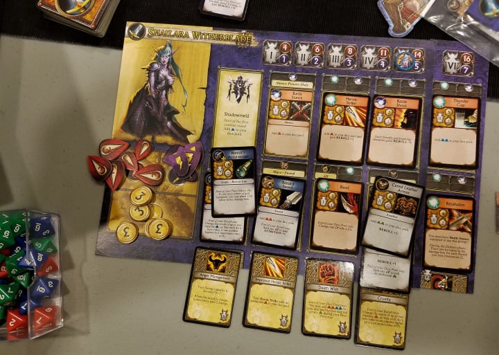Two expansions (Shadow of War and Burning Crusade) and a promo BlizzCon epic armor pack were released. A third one (Scions of Darkness) was announced but became vaporware. There are a lot of tokens, figures, and cards to bring you there and back again on this journey. The quest cards alone, if you read them all, have a Tolkien’s book worth of flavored texts. The item and class cards give high replay value and wonderful synergies.