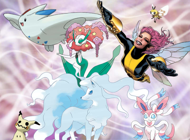 The youngest of all the Gym Leaders, Pixie is the first test young trainers must pass. She trained directly under the Region Champion, who gave her her Eevee, which evolved into her Sylveon. Her mutation resulted in fairy wings and the shimmer they give off causes Fairy-Type Pokemon to bond with her quickly. With her team of fairy-type Pokemon she has a strong team behind her that she holds close bonds with.