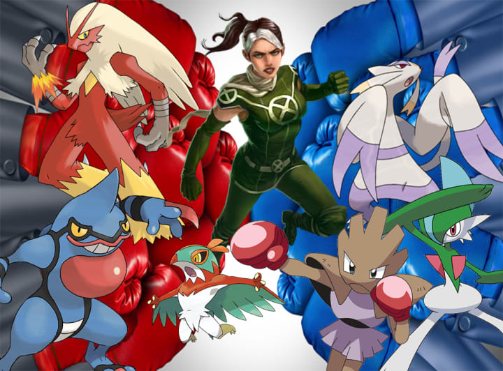 Young Rogue was an orphan and found her family when wild Tyrogue entered her life. However, the pair stumbled into the employ of the Brotherhood to work on high profile jobs of terrorism, using Rogue's absorption powers. Rogue realising she had been used sought out help from Professor Xavier, who helped Rogue deal with the trauma of her actions using her absorbing X-Gene. Growing stronger, she found kinship in Fighting-Type Pokemon, and with Hitmonchan she is the final test for all young trainers.