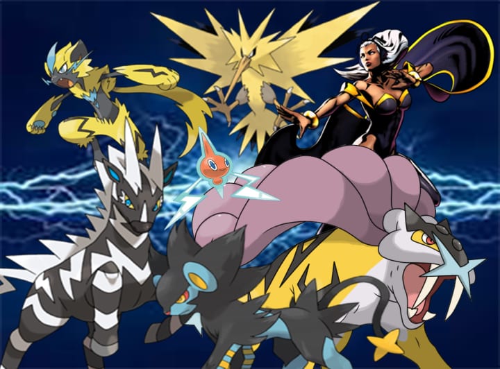 Orphaned at a young age, Ororo grew up on the streets and was a thief. One day she picked the pocket of Professor Xavier, who took her in and made her his young lab assistant. Working in the lab with an injured Zapdos one day, Ororo was struck hard by a bolt of lighting from the panicked bird. But this activated her X-Gene and turned her into Storm. Now with a connection to the legendary bird, Storm and Zapdos quickly showed their worth and were made part of the Elite Four.