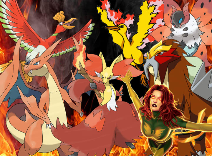 Jean Grey was mentored by Professor Xavier from a young age, but while on an expedition with the Professor was when she encountered the "Rainbow Feather." Finding its colours and shine so pretty, she kept it with her at all times. This caused her X-Gene to activate and for her to form a psychic connection with the legendary Ho-Oh. As she matured their link became stronger, to the point she went on a rampage as Dark Phoenix when Ho-oh was attacked by the Brotherhood. Freeing Ho-Oh and regaining her control, she vowed to protect Xavia as the Phoenix and became the final members of the Elite Four.