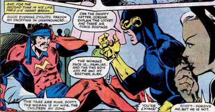 After Christopher Summers is sold into slavery, he manages to escape by facilitating a Starjammer. He then decided to go by the moniker of Corsair, and became a space pirate of sorts. Eventually Corsair a.k.a. Christopher Summers would be reunited with his sons, Alex and Scott Summers. Although, it hasn't been the happiest of family reunions in recent history. Despite all of that, Christopher Summers' comic-book history foretells his future in the cinematic X-Men universe.