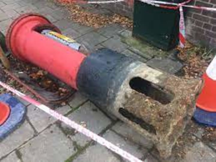 I helped him, providing brute strength where required but that was about my limit as I am not practically skilled. Those cast iron post boxes are really something else, the distance they go into the ground is about a third their size, and that has to be dug out before they are installed. Guess what I did.