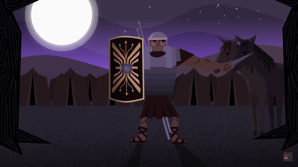 Today, Servius and his legion are on a long march of about 36 kilometers with heavy armor and weapons. He's also carrying a backpack with food and tools. After his duty, he has to stay awake to guard the baggage animals and watch for any attacks. He's not looking forward to the next day, which brings back bad memories.