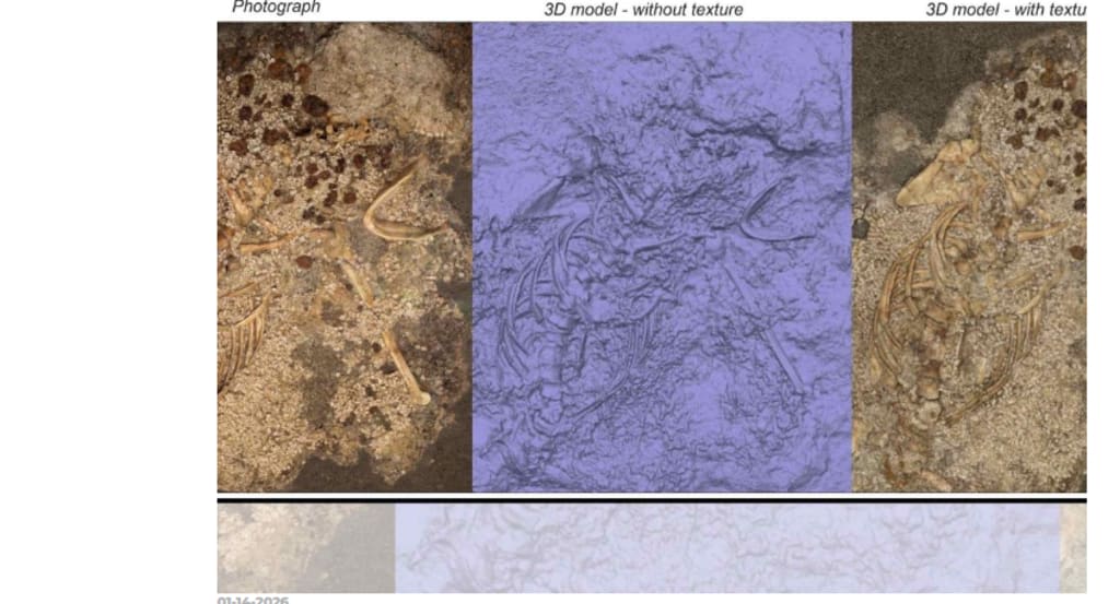 One adult woman was wrapped by a full-body beaded tunic and laid on her back with her arms raised. This burial position with arms lifted high is known to archaeologists as the "oranti pose," and they frequently associate it with invocation.