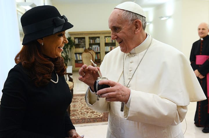 When Bergoglio was elected pope, initial reactions were mixed. Most of the Argentine society cheered it, but the pro-government newspaper Página 12 published renewed allegations about the Dirty War, and the president of the National Library described a global conspiracy theory. The president took more than an hour before congratulating the new pope and did so only in a passing reference within a routine speech. Due to the Pope's popularity in Argentina, Cristina Kirchner made what the political analyst Claudio Fantini called a "Copernican shift" in her relations with him and fully embraced the Francis phenomenon. On the day before his inauguration as pope, Bergoglio, now Francis, had a private meeting with Kirchner where they exchanged gifts and lunched together. This was the new pope's first meeting with a head of state, and there was speculation that the two were mending their relations. Página 12 then removed their controversial articles about Bergoglio from their web page as a result of this change.