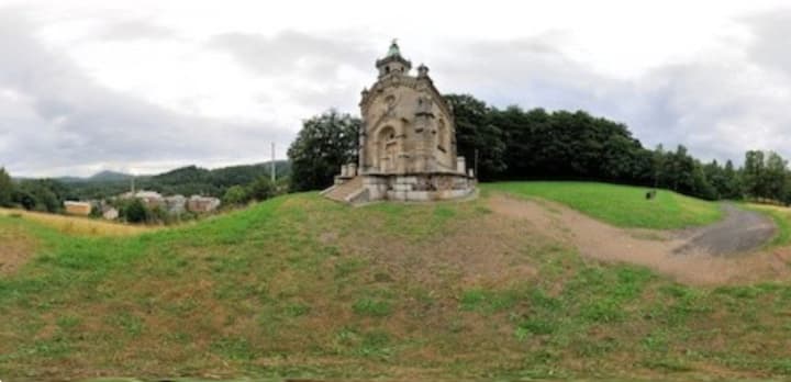 The mausoleum sits on a hill overlooking his glass factory and his mansion Riedelova Vila, now owned and run by PreciosaOrnela and the villa is a museum.