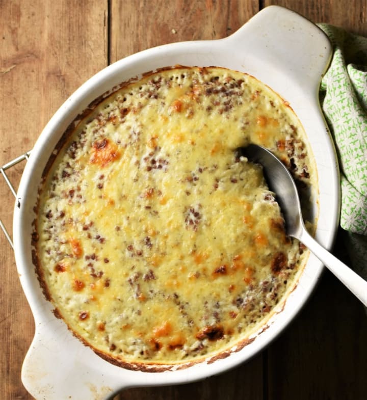 In the olden days, they would take wheat or rye grains and boil them up with half a pig’s head sometimes adding peas and beans. One modern version of this dish consists of one medium-sized onion, lean, smoked bacon (best if in one piece and not in strips), and buckwheat. On a dry, hot frying pan scatter in the buckwheat so that it covers the whole pan. Then brown them. Separately take the bacon and onions which have been finely chopped and quickly fry them up in a pan until the onion is limp and the bacon browned but not crisped up. In a casserole you’d put in one layer of the browned buckwheat, then a layer of bacon and onion, and so on. The top layer should be buckwheat. Afterward, dissolve a bouillon cube in hot water either beef or chicken, and pour the hot mixture over all the layers. Bake at 350° for around 60 minutes. Be sure to watch to see that it doesn’t dry out. When the buckwheat is ready the dish should be dry and the liquid should have soaked up into the buckwheat.