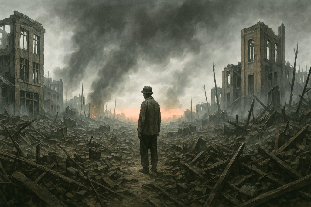 Yuki, a fourteen-year-old schoolgirl, had just stepped outside her classroom. She remembered only the light — blinding, white, consuming. When she opened her eyes again, the building was gone. Her teacher was gone. Her skin felt like it was peeling away. She didn’t scream. No one did. Not yet. The city was quiet in its ruin, stunned into silence.