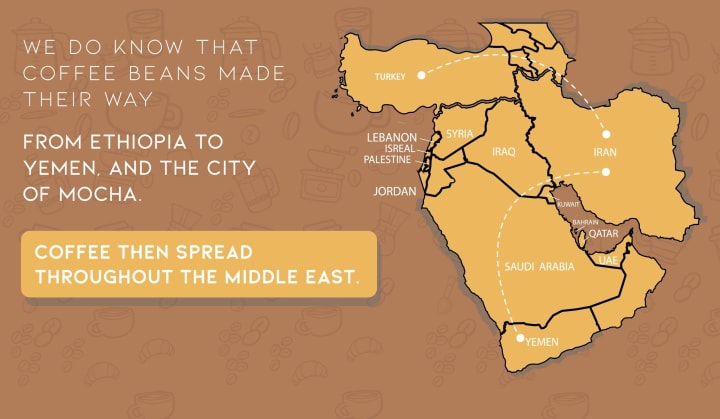 Coffee is believed to have been brought to Yemen from Ethiopia. According to historical documents, Muslims in Yemen learned about coffee in the 1400s, when Muslim traders and pilgrims brought coffee beans across the Red Sea from Ethiopia.