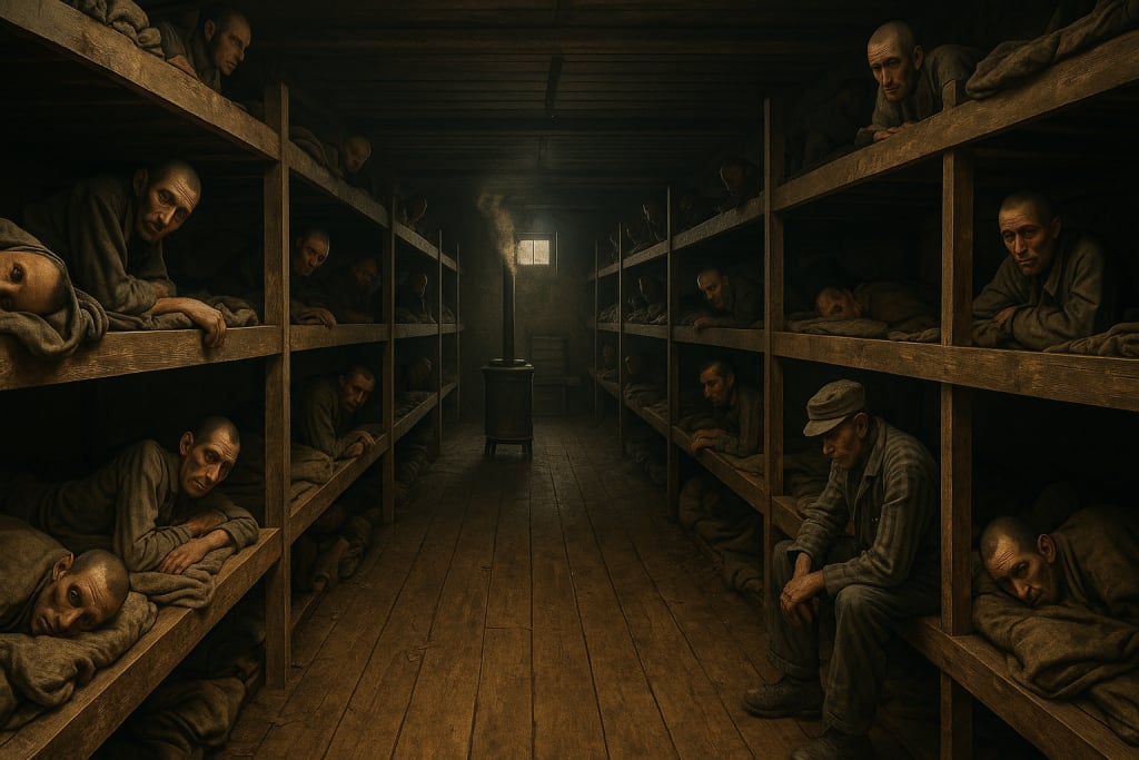 Sergei Antonov opened his eyes to darkness. His breath was a pale cloud above him, the straw beneath his body stiff with frost. The barracks reeked of sweat, urine, and the sour stench of infection. Around him, men moved like broken marionettes, their joints cracking, groaning in whispers they barely remembered how to speak.