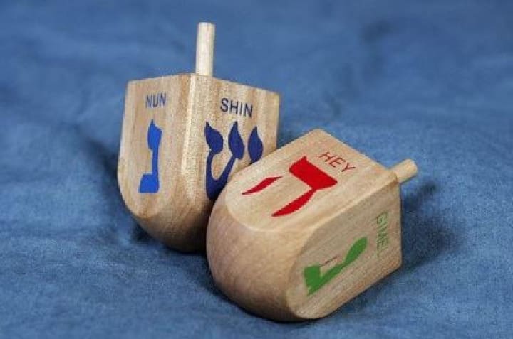 Although tops are considered to be traditional European toys it is the Dreidel that became an early symbol of Hanukkah. Legend has it that at one time when it was illegal to study the Torah during the time before the Maccabees reclaimed Jerusalem the Jewish people who wanted to secretly study the Torah would pretend that they were playing with the Dreidel if Hellenic soldiers came upon them. Rabbis who administered Judaic law during the Middle Ages allowed gambling and other games at Hanukkah so playing the dreidel became popular. During this time lots of games are played and the most popular is ”dreidel” (Yiddish) or ”sivivon” (Hebrew). The Dreidel top has four sides and on each side is a Hebrew letter.