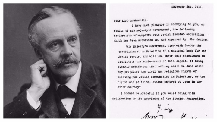 On November 2, 1917, British Foreign Secretary Arthur Balfour penned a letter that would have profound consequences for the Middle East. The Balfour Declaration declared Britain's support for the establishment of a Jewish homeland in Palestine. At the time, 90% of Palestine's inhabitants were non-Jewish, mostly Arabs. Within three decades, the region underwent significant upheaval, leading to the creation of the State of Israel and the displacement of many Palestinians. Here's a simplified overview of the events that led to this dramatic transformation.