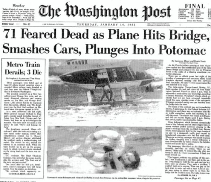 Despite not occurring after 1995,the Air Florida Flight 90 accident is a noteworthy incident that deserves to be mentioned. Soon after taking off from Washington National Airport in 1982, the jet crashed into the 14th Street Bridge. 78 people were killed in the collision, including four bridge-bound drivers. This disaster was crucial in improving commercial aircraft operations in cold weather and deicing techniques.