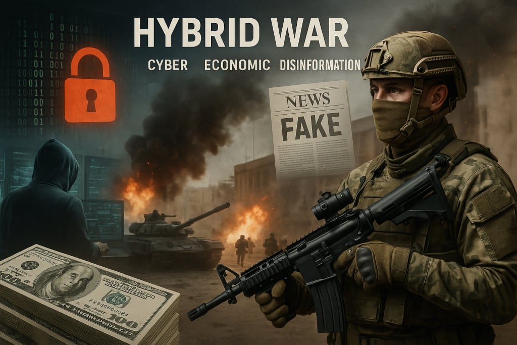 Hybrid warfare is a mix of traditional and non-traditional ways to fight a war. It combines military force with cyber attacks, misinformation, economic pressure, political influence, and even support for rebels or protests. The goal is to confuse, weaken, or take control of a country without starting a full war.