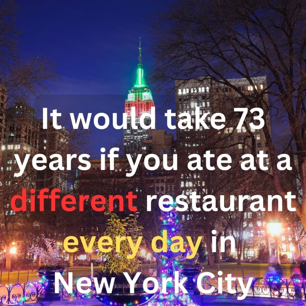 It would take 73 years if you ate at a different restaurant every day in New York City