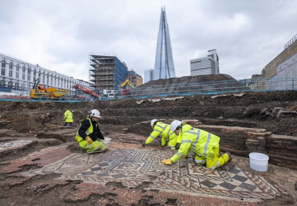 Large Roman mosaic floor discovery on London building development in Southwark.