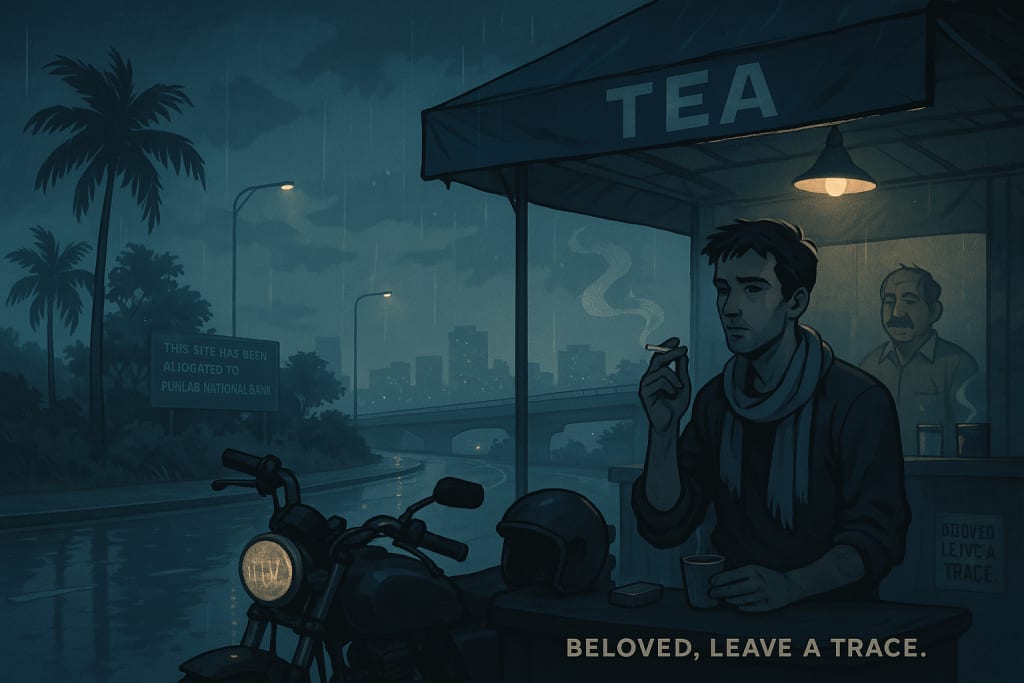 The rain picks up now. Drops fall in a steady plip-plop through the tarp awning. A heaviness settles in my chest. On the way here, among the green, I saw a signboard by the roadside: "This site has been allocated to Punjab National Bank." There were a few more like it. Old concrete crumbles. New structures rise. And in between, the greenery disappears. Like always, I feel the urge to say, "Beloved, leave behind a memory."