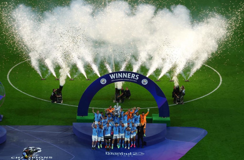 Manchester City emerged victorious in a nail-biting Champions League final, defeating Inter Milan 1-0 and securing their first-ever European championship. This monumental win also marks the completion of a historic treble, as the team became the first English club since their city rivals Manchester United in 1998-99 to achieve this feat. Manchester City's treble consists of Premier League, FA Cup, and Champions League titles, all in the same season.