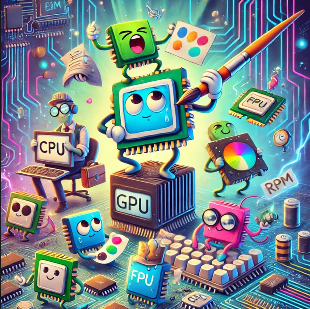 The GPU, however, has eyes for the RAM too, creating a classic love triangle. “I can give you the visuals you crave, CPU, but only if RAM supports us both,” it winks. Poor RAM is left in the middle, juggling the demands of both suitors. “Why can’t we all just get along? We can form a great team!” it pleads.