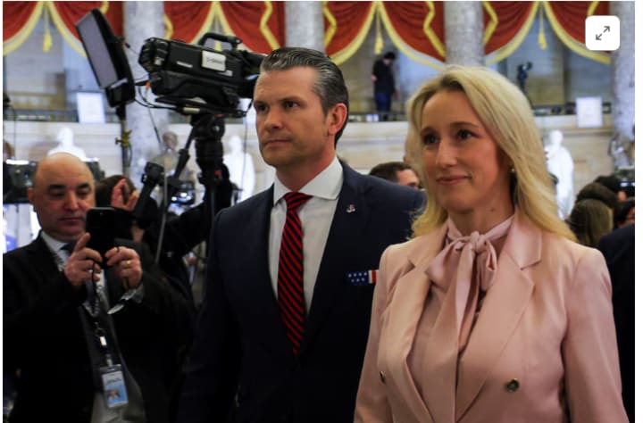 Hegseth's wife, Jennifer, a former Fox News producer, has attended sensitive meetings with foreign military counterparts, according to images the Pentagon has publicly posted.
