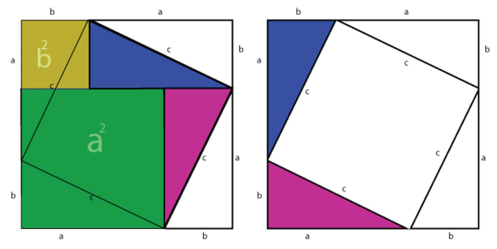Pythagoras of Samos was a famous Greek mathematician and philosopher ( c. 570 — c. 495 BC). Pythagoras is associated with the famous geometric theorem that bears his name. The theorem states that In a right triangle, the square of the hypotenuse is equal to the sum of the squares of the other two sides.