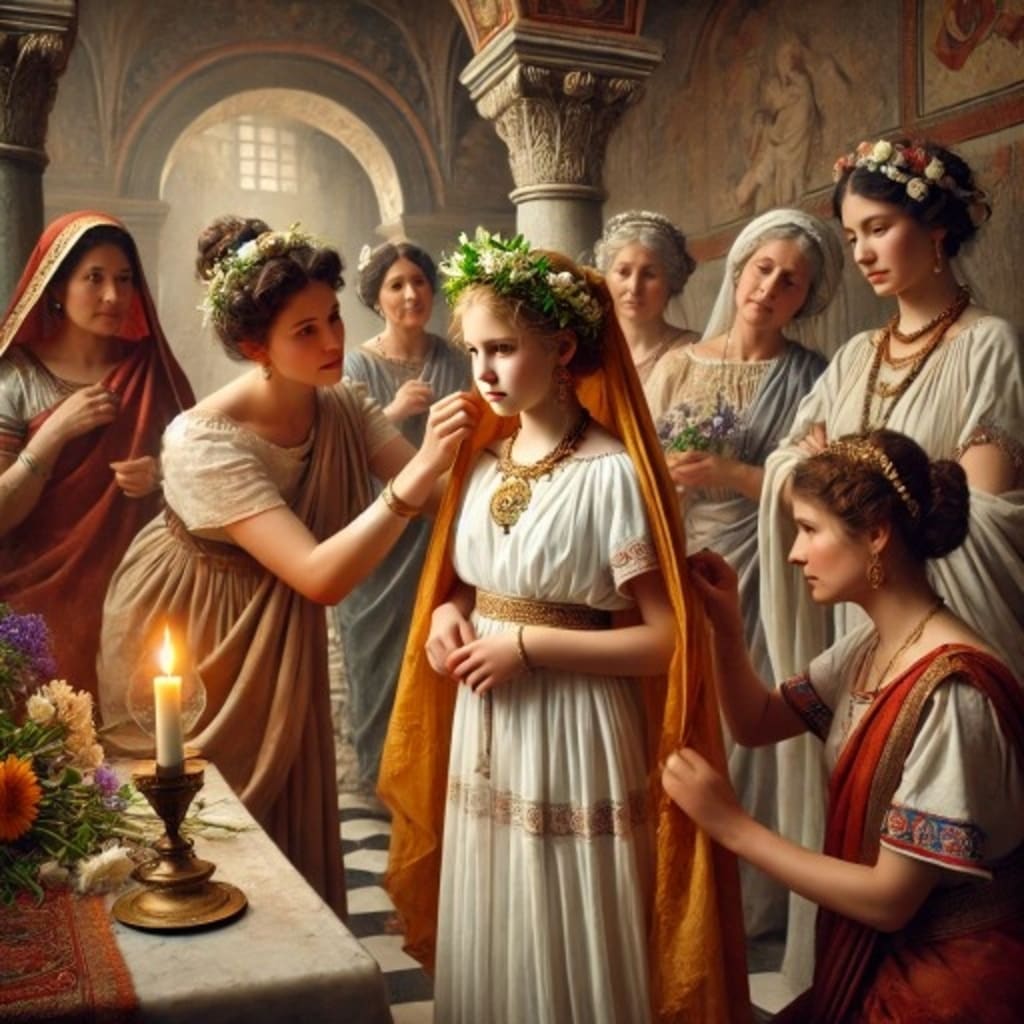 "Exploring the traditions, customs, and societal norms surrounding marriage for young girls in ancient Rome."