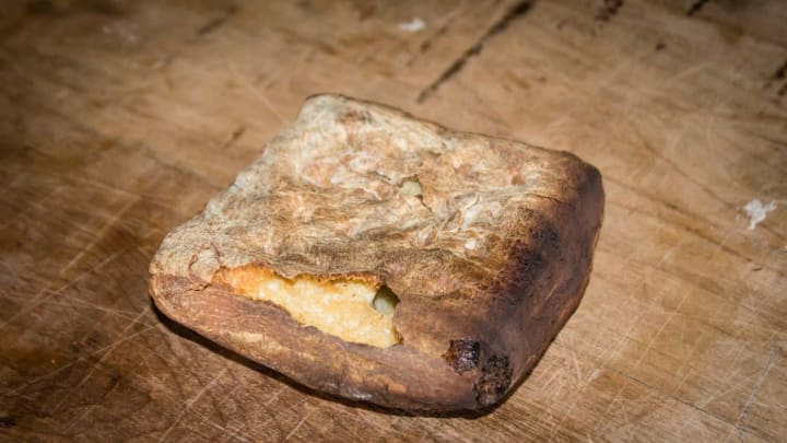 Hardtack was made from flour, water, and salt and was commonly eaten during the Civil War. It was made famous because it was awful. Soldiers would commonly dip their hardtack in water to soften it, and on holidays, if they were lucky enough, fat or lard (if there was any.)
