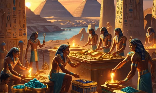 Jewelry and Amulets: Bracelets, collars, and rings crafted from gold, lapis lazuli, carnelian, and turquoise.